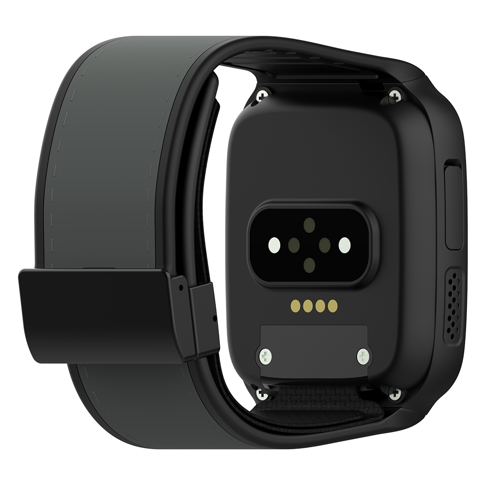 Green LED light penetrates the skin to detect changes in blood flow, calculating heart rate in real time. The watch vibrates to alert the wearer in case of abnormalities.